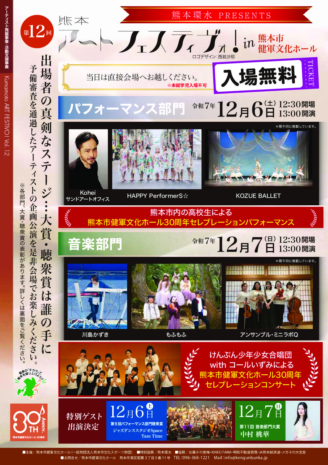 また第2部は今年で開館30周年を迎えた熊本市健軍文化ホールのセレブレーションとしてスペシャルステージを予定しております。